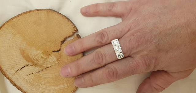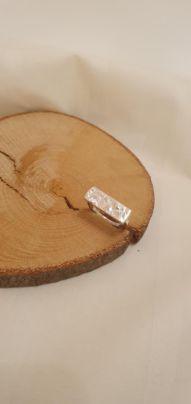 Pièce unique entièrement forgée à la main dans mon atelier à Angers, cette bague est réalisée en argent 950. Ce métal garantit une grande solidité ainsi qu'une durabilité permettant modifications ou réparations au fil du temps.
